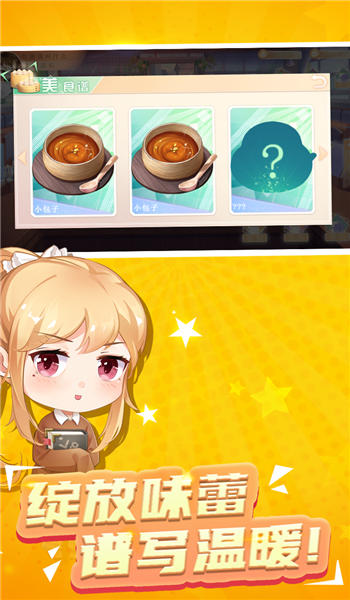 1、随时随地,经营有间小馆,解锁更多种类的美味食物。